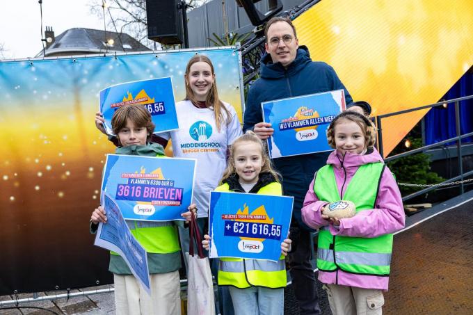 De Scholengroep Impact – met vestigingen in onder meer Brugge, Knokke-Heist en Torhout – kwam me vele tientallen leerlingen afgezakt naar ‘t Zand donderdagmorgen. Algemeen directeur van de scholengroep Pieter De Winne had een mooie cheque bij voor De Warmste Week, namelijk met een bedrag op van 21.616 euro.