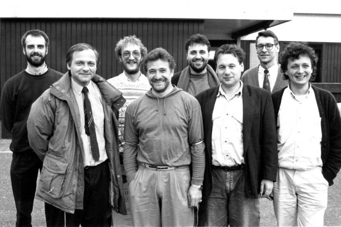“De Latijnse naam voor ons gezelschap is bedacht door priester Rob Debels, in die tijd kapelaan van De Goede Herder. Eerst zongen we hoofdzakelijk koorwerkjes, maar na verloop van tijd verdiepten we ons almaar meer in het pure a-capellarepertoire. We zongen op feestjes, familiebijeenkomsten en noem maar op, maar op ons allereerste échte publieke concert was het wachten tot het voorjaar van 1992. Dat was in het kerkje van De Goede Herder. Op dat moment waren we met z’n achten: Jan Decorte, Herman Cloet, Walter Vanhooren, Danny Jaques, Geert Jaques, Wilfried Vantyghem, Bart Verhelle en ik. Wilfried is niet bijzonder lang lid van het gezelschap geweest. Ik denk een jaar of iets in die orde.”