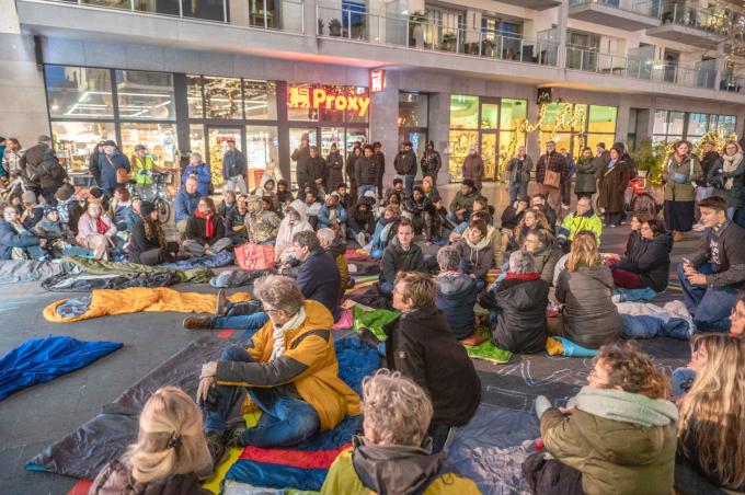 Nu de winter nadert en de feestdagen voor de deur staan, vragen verschillende sociale organisaties aandacht voor dak-en thuisloosheid. Dat deed men donderdagavond met een slaapzakactie op de Munt. Een 50-tal actievoerders nam er op de grond plaats.