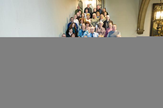 In het stadhuis werden 33 voormalige personeelsleden van de stad ontvangen en bedankt voor hun jarenlange inzet. Het gaat om mensen van uiteenlopende stadsdiensten. De gevierde gepensioneerden zijn Nadine Allemeersch, Nicole Blomme, Ludo Cardon, Vera Claeys, Eddy Costenoble, Concetta Cretaro, Gino Daneels, Gino De Graeve, Rudy D’Hooghe, Gina Dobbels, Peter Emmery, Mia Emmery, Katrien Feys, Marie-Rose Ginneberge, Nadine Gydé, Benadette Jaques, Marleen Liefhooghe, Patrick Maipauw, Bart Naeyaert, Marijke Reckelbus, Marnick Rosseel, Anna Sabbe, Johnny Scheemaker, Dany Sinnaeve, Jean-Pierre Van Loocke, Koen Vandamme, An Vandekerckhove, Peter Vanderispaillie, Dorine Vanhee, Greta Vanhoutte, Hermine Vanhoutte, Marijke Vrielinck en Nicolas Wygaerts. (SR/foto Davy Coghe)
