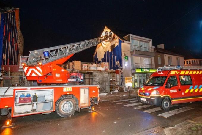 Het stuk gevel stortte naar beneden op de eerste verdieping van de appartementen in aanbouw. Daarbij raakte niemand gewond. De brandweer snelde ter plaatse om de woning te dichten. “Ze zijn die gevel nu aan het ‘afslaan’ met plastic, maar met die wind is dat niet simpel”, aldus nog de brandweercommandant.