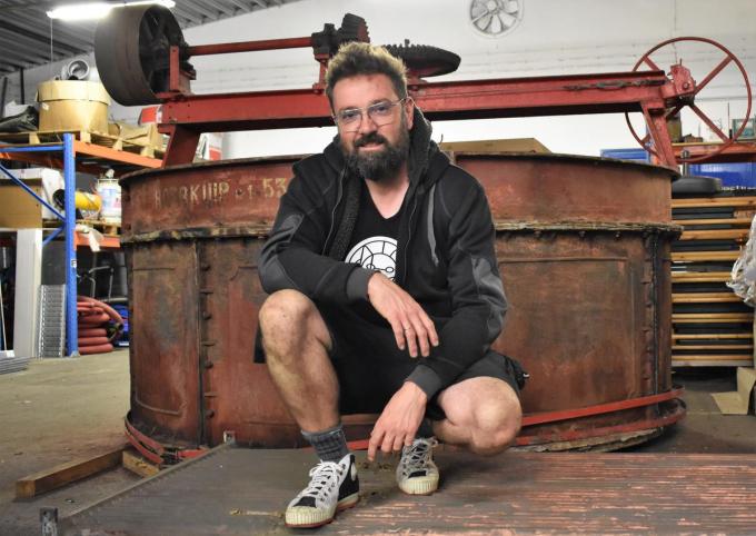 Brouwerij De Poes is weer een blikvanger rijker: Stijn David haalde een enorme roer- en filterkuip van 100 jaar oud in huis. “Er is speciaal vervoer aan te pas gekomen om ze naar Tielt te brengen.”