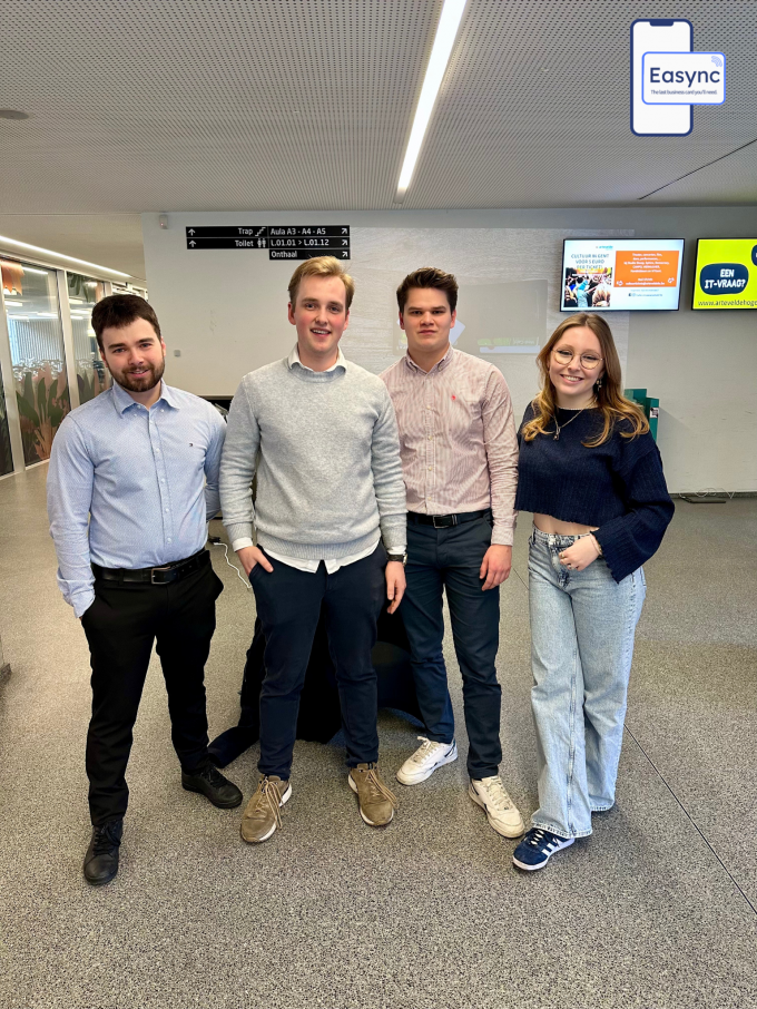 De studentenonderneming Easync kwam voor haar eindwerk op het idee om NFC-businesskaarten te ontwerpen. Een businesskaart die kan gescand worden met de smartphone en zo de gegevens automatisch overneemt. Groener en makkelijker dus.