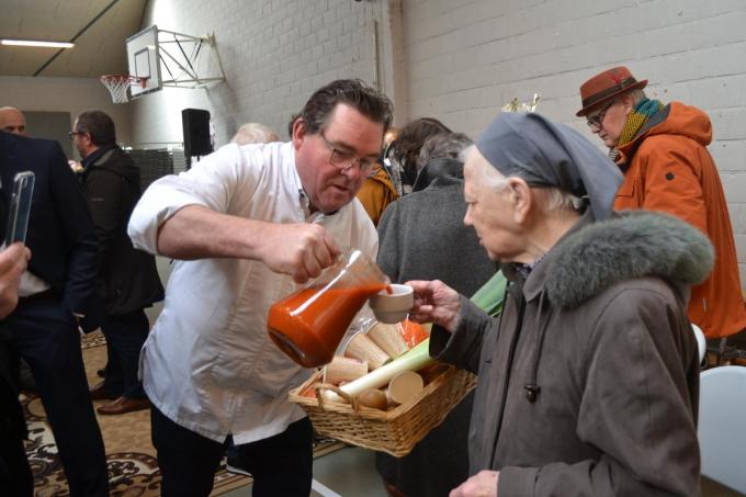 Henkie Courters, gewezen kok van de feestzalen Lindenhof, had de soep klaargemaakt. “Ik weet nog dat de zuster af en toe wat groenten kwam vragen voor de soep of voor een goed doel. Ook bij de boeren van de wijk was zij gekend als verzamelaarster van (gratis) soepgroenten.”