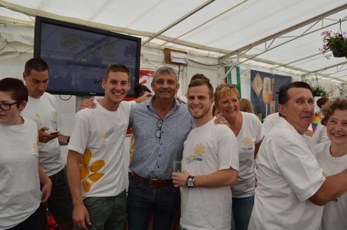 Rond 1 uur op zondagmiddag – de toogzitters hadden er toen al 22 uur opzitten – kwamen acteurs Gilda De Bal en Vic Dewachter in de tent aan om de deelnemers naar de finish te helpen supporteren. Gilda De Bal werd in het verleden zelf met kanker geconfronteerd en draagt de Kortemarkse actie sedert de beginjaren dan ook een warm hart toe. Om 15 uur stipt werd de toogmarathon afgeblazen en kon men op een heel geslaagde editie terugblikken, waarbij de teller – voorlopig – op een maar liefst fabelachtige 117.000 euro bleef staan. Opnieuw een record gesneuveld dus en zowel deelnemers als publiek lieten in een bomvolle tent hun emoties nadien de vrije loop.