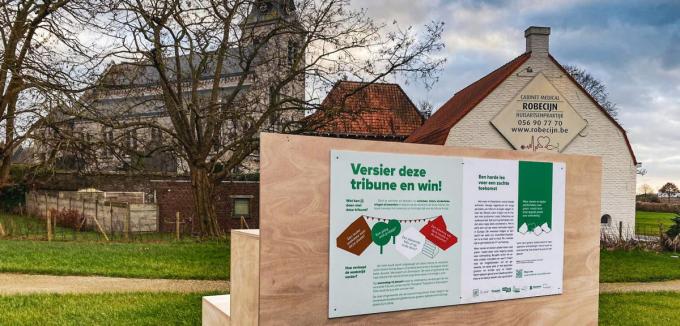 “Op woensdag 17 januari vormen we met de zes opstellingen één lange tribune in Zwevegem. Daar wordt de stad of gemeente met de best versierde tribune tot winnaar gekroond. Die krijgt in 2024 een tijdelijke metamorfose: de locatie wordt dan omgetoverd tot een groene, sociale ontmoetingsplek. Zo kan er een speelpleintje komen, een zitbank met uitleenbib-liotheek of plukweide of misschien wil de winnaar wel verdergaan met onze tribune en er een culturele (feest)plaats van maken”, zegt Filip Daniëls, lector Netwerkeconomie (Howest).