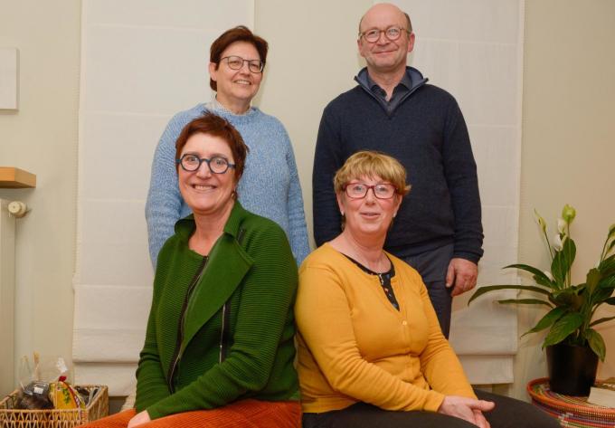 “Er schreven 28 standhouders in die voor een gevarieerd aanbod zullen zorgen”, zegt Veerle De Pestel van de Gezinsbond. “Wie op zoek is naar babyspullen kan komen kijken en eventueel kopen van 8.30 tot 12.30 uur. En we zorgen ook voor een drankje. Ons comité is er alvast klaar voor.” Op de foto zittend links Tine Coucke en Veerle De Pestel. Staand: Els Lagae en Ivan Lagousse. (IB-foto Frank)