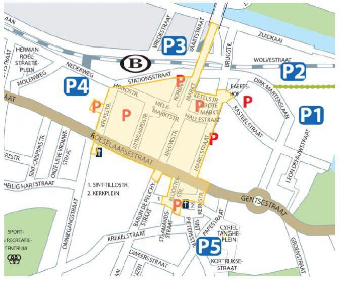 Ook de parkings worden goed bewegwijzerd, ook die voor andersvaliden en fietsers. Mensen met een handicap kunnen hun wagen kwijt aan het station, de Sint-Tillokerk en de Roeselaarsestraat ter hoogte van de Ommegangstraat. Fietsparkings zijn er in de Kasteelstraat en de Roeselaarsestraat ter hoogte van de Ommegangstraat. Maar aan de Sint-Tillokerk wordt ook een grote pop-up fietsparking gerealiseerd.