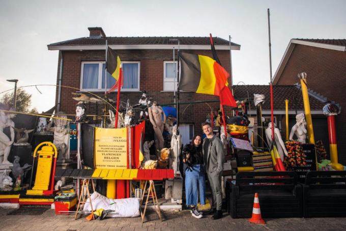 Waarom? Zo surrealistisch dat hij meteen het boek mocht openen. De tachtiger heeft zijn voortuin omgebouwd tot openluchtmuseum met heel veel Belgische attributen. “We hadden horen waaien dat er een man was met een speciale voortuin”, aldus Karen. “Hele sympathieke mensen. We werden er met open armen ontvangen.” Kamiel: “Hij hoort niet zo goed, dus zijn dochter moest alles roepen. Ik begrijp wel wat West-Vlaams, maar het is best dat zij wat vertaalde.” (lacht)