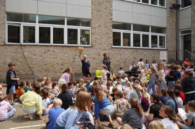 Enkele weken voor haar afscheid werd de juf bejubeld tijdens een verrassingsdag. “Met een passend lied ‘Debouck of love’ bezongen ze de kwaliteiten van deze zorgcoördinator”, vertelt directeur Maarten Dumoulin. “Juf Katrien was echt een rots in de schoolbranding. Als kinderen het moeilijk kregen op school, zowel op het vlak van leerstof als op gevoelsvlak, dan was zij daar om te zoeken naar oplossingen. Ze deed haar werk altijd met een groot hart, warm, maar to the point. Ook voor de collega’s was zij een baken van vertrouwen.”