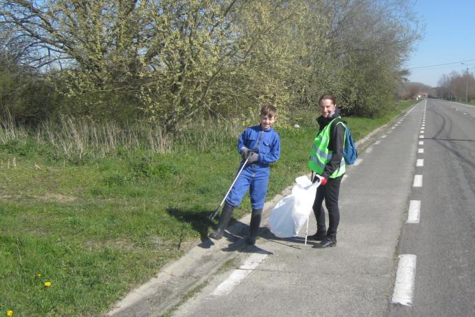 Het onaangename koppelen aan het nuttige, zo luidt het devies van Veerle Callens en zoon Remi Crul (10). Deze namiddag wandelen ze de lange Poekestraat af in Ruiselede, gewapend met prikstok en plastic zak.