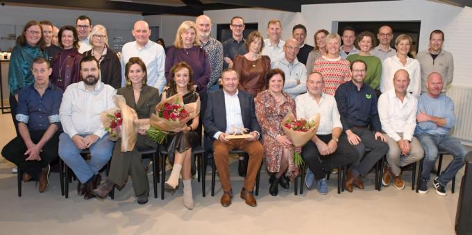 Bij wielertoeristenclub Tandje Bie uit Poelkapelle werden de kampioenen van het voorbije seizoen gehuldigd. Er werden het voorbije seizoen 31 ritten afgewerkt op zondagvoormiddag. Norman Ligneel was elke keer op de afspraak en mag zich zo kampioen noemen. Bij de dames ging de titel naar Katleen Vannieuwenhuyse en Anja Debeerd werd tijdritkampioenen. “We blikken terug op een succesvol seizoen, met ook onze jaarlijkse dagrit, tijdrit, eetfestijn en pannenkoekenverkoop”, vertelt voorzitter Stijn Moreau, die 39 leden mocht verwelkomen op het eindeseizoensfeest. “Na 14 jaar trouwe dienst namen we ook afscheid van Tony Vanbelleghem en we willen ook graag onze lokaaluitbaters Marc Tanghe en Marie-Jeanne Taillieu bedanken.” Op de foto: de kampioenen, geflankeerd door bestuursleden en andere leden. (RB/foto RB)