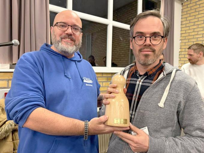 Kevin Louwye schreef de vierde editie van het gezelschapsspellentornooi van de Oostendse spellenclub De Pionne op zijn naam. Een recordaantal van 245 deelnemers daagde hiervoor op naar vrijetijdscentrum Duin en Zee. Heel wat bekende en minder bekende spellen kwamen aan bod. Behalve Kevin Louwye als de eigenlijke winnaar (rechts op de foto met voorzitter Jan Beyen), werden ook Tyas Vanbruwaene (honderdste plaats) en Fien Wellemans (beste jongere) in de bloemen gezet. Tijdens het Oostendse tornooi werd onder meer gespeeld voor de laatste plaatsen voor het Belgisch Kampioenschap bordspellen. Alle deelnemers aan het evenement van De Pionne kregen een gezelschapsspel mee naar huis. De vijfde editie van dit tornooi is voorzien op zondag 8 november 2026 in Duin en Zee. (foto BVO)