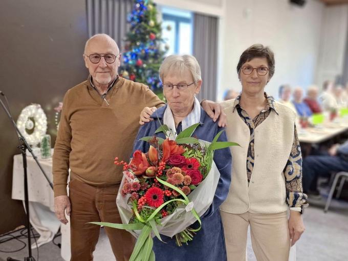 Tijdens de kerstviering van Okra Trefpunt Deerlijk werd teamcoördinator Lieve Rogé (geflankeerd door Erik Bossuyt en Mieke Hostyn) in de bloemetjes gezet. Na elf jaar onverdroten inzet kreeg zij met Mieke Hostyn een waardige vervangster. Okra Trefpunt Deerlijk telt een 330-tal leden. “Voor de dagelijkse werking, communicatie en organisatie van de activiteiten zijn er negen teamleden, elk met een eigen taak”, verduidelijkt Mieke Hostyn. “Allemaal vrijwilligers met een groot hart ten dienste van de leden. Okra is en blijft een beweging die actie onderneemt voor een duurzame, zorgzame, solidaire, inclusieve en waardevolle samenleving met een plaats voor senioren. We doen dat samen en in dialoog met elkaar.” (DRD/foto DRD)