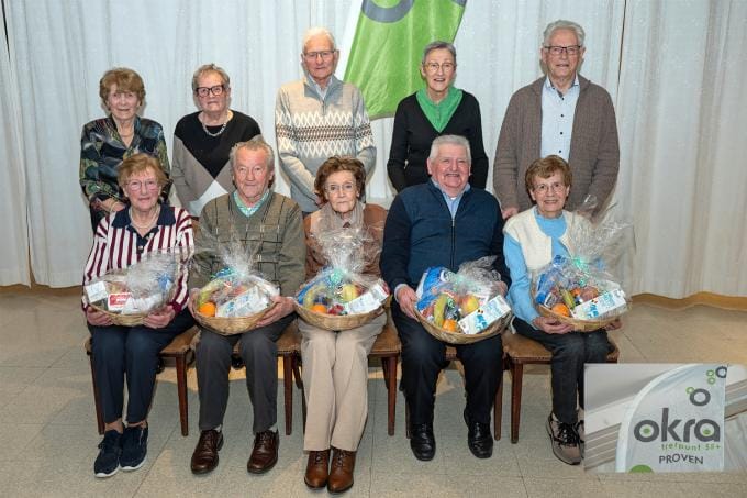 De nieuwjaarsviering van Okra Proven vond plaats in Kristen Volkshuis in Roesbrugge. Meteen werd van de gelegenheid gebruikgemaakt om de kampioenen van het voorbije jaar in de bloemetjes te zetten. Frans Soetart en Christiane Leys kroonden zich tot kampioen in het petanquen. In het rummikuppen ging de titel naar Roza Prinzie en in het kaarten was Joël Vanneste de primus bij de heren en bij de dames eindigde Paula Cappoen op de eerste plaats. Op de foto zien we vooraan de kampioenen en achteraan de bestuursleden van Okra Proven. (BC/foto BC)