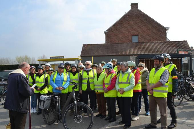 De zon liet zich even zien wanneer de fietsers van Okra-Sellewie aan hun startrit begonnen. Priester Frans Dewulf zegende de fietsen en sportievelingen.