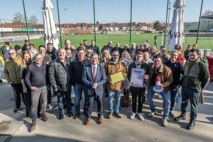 De Krottegemse Ransels, vzw Inval en Club Roeselare organiseerden zondag samen een nieuwjaarsdrink voor de bewoners van de Roeselaarse wijk Krottegem. Ruim honderd aanwezigen tekenden present in en rond de kantine van voetbalclub Club Roeselare. “Een mooie samenwerking tussen de verschillende plaatselijke verenigingen”, aldus Frederik Moerman, voorzitter van de Krottegemse Ransels. Zij reikten naar jaarlijkse gewoonte een Gulden Ransel uit aan een opmerkelijke bewoner van de wijk. Die ging dit jaar naar Mooimaker Raf Brasseur. “Dankzij de actie ‘Mooimaker zoekt Mooimaatje geraakte ik geïnspireerd door het werk van mooimaaiker Didier Dejonghe. Didier pakt het centrum van Krottegem onder ander, met mijn bakfiets trek ik er op uit doorheen de buitenste straten van de wijk.” De organisatoren van de nieuwjaarsreceptie organiseerden ook een ludieke quiz. Zenon Desender bewees het meest te weten over de wijk en werd zo gehuldigd als eerste Krottegemnoare Universalis.