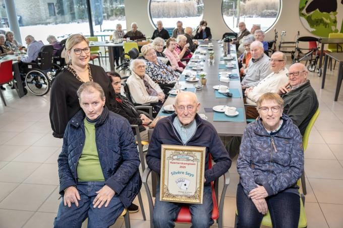 In wzc Rustenhove vond de jaarlijkse kampioenenhulde van de kaarters plaats. Iedere eerste woensdag van de maand komt een mooie groep kaarters samen voor een gezellige namiddag. Silvère Sys toonde zich de voorbije maanden de beste kaarter. Paul Vandenberghe, Roger Bostoen en Monique Coucke deelden de tweede plaats. “De kampioenenhulde was een warme bijeenkomst voor alle kaarters. Ook dit jaar konden we weer op het enthousiasme van bewoners, familieleden, bezoekers en mensen uit de buurt rekenen”, blikt Lisi Decrock, begeleider wonen en leven in het woonzorgcentrum, terug. Meer info omtrent de kaartingen is verkrijgbaar via animatie@rustenhove.be. (BF/foto JS)