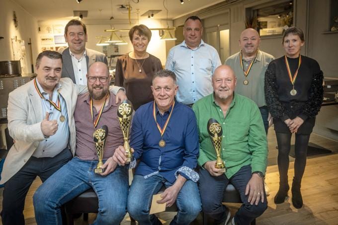 De Boomsmitters, de dartsclub die gevestigd is in café De Lindeboom in Rollegem-Kapelle, vierde haar kampioenen. Tijdens een gezellig samenzijn werden de winnaars van het voorbije seizoen in de bloemetjes gezet. Bij de dames werd Stefanie Lesaffre kampioen. Bij de heren gooide Jan Coolsaet het best. Danny Bekaert en Dieter Plateeuw werden respectievelijk tweede en derde. Inmiddels staan de leden van de dartsclub te popelen om te starten aan het nieuwe seizoen. Dat begint aanstaande vrijdag 9 januari. (BF/foto SJ)