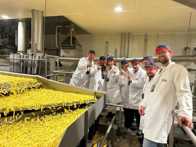 “Bij Global Fries werden we verwelkomd door CEO Bram Lamaire en zijn team. De structuur en werking van het bedrijf werden uit de doeken gedaan”, zegt Kim Vandenbroucke van Unizo Vleteren. Unizo Vleteren wil alle Vleterse ondernemers samenbrengen en verenigen. “Na de inleiding volgde het bezoek aan de productie. We kwamen te weten hoe het productieproces verloopt. Een interessant traject van sorteren, wassen, schillen, snijden, bakken, invriezen en uiteindelijk inpakken. Alles gebeurt in de productie bij Global Fries.”
