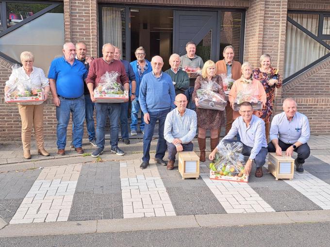 Naar jaarlijkse gewoonte wordt bij de vinkenmaatschappij De Verenigde Vrienden, gehuisvest in lokaal Vrij Polen, het seizoen afgesloten met een gezellige kampioenenviering. De maatschappij van voorzitter Philip Ampe telt nog een veertigtal leden, wat vrij omvangrijk is, gezien de trage achteruitgang van de vinkensport in onze contreien. Tijdens een gezellige maaltijd werden de kersverse kampioenen bekendgemaakt en met bloemen bedacht. We zetten ze even op een rijtje. De grote kampioenen waren Benny Roelstraete, Germain Lannoo, Dorine Vervacke, Philip Ampe, Jean Pierre Demarrez, Eddy Dejonghe en Marijke Salembier. Volgende laureaten werden ook nog met een fruitmand bedacht: Marleen Seynaeve, Marc Derhoore, Philip Ampe, Jean Pierre Eeckhout, Freddy Debosschere, Wim Mervylde, Marc Decock, Dirk Deconyck, Luc Casteleyn, Lucien Carlier en Francky Damman. Op de foto zien we de kersverse kampioenen omringd door het bestuur van De Verenigde Vrienden. (CLY)