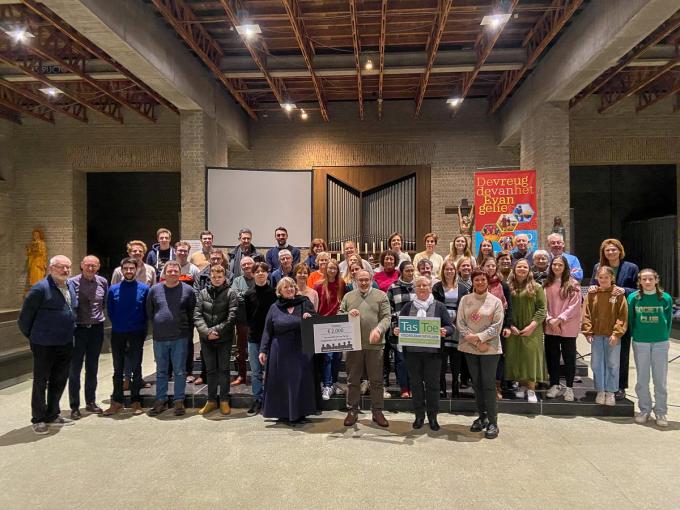 Ondertussen is alle hulp welkom. Zoals het geld ingezameld door koor Echo. “Popkoor Echo”, verduidelijkt Sophie. “De tijd dat we enkel in de kerk optraden ligt al een tijdje achter ons. Het concert was tegelijk een jubileumconcert, Echo bestaat 40 jaar en heeft resoluut gekozen voor populaire muziek zoals ‘With or without you’, ‘En Route’, ‘Easy on me’ of ‘Africa’.”
