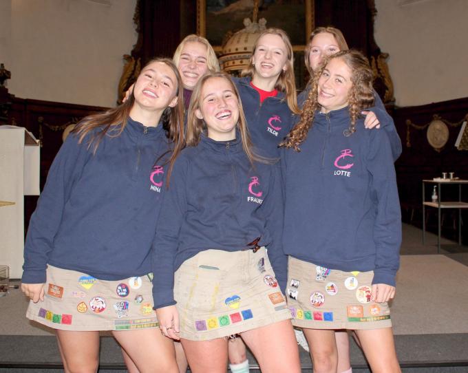 Op het feest van de Chiro werden zes nieuwe leidsters in de ploeg opgenomen: Frauke Demoor, Tess Cotton, Jasmin Lannoo, Tilde Delbeke, Nina Vandebuerie en Lotte Houpline. (MVD)