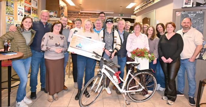 Tal van Zonnebeekse verenigingen zetten hun schouders onder De Warmste Week met activiteiten in café d’Oude Timmerie. De initiatieven kenden heel wat succes en als dank voor de gulheid van de deelnemers werden verschillende prijzen verloot. Het pronkstuk van de actie, een fiets, ging naar Patrick Catrysse. Olivier Kerkhof en Filip Vansteelandt kwamen het dichtst bij de juiste schatting van 700 flyers en mochten ook een prijs in ontvangst nemen. Daarnaast waren er ook waardebonnen en manden met streekproducten voorzien voor andere winnaars. Op de foto: de aanwezige winnaars met de organisatoren en uitbaatster Nele Vanlerberghe. In totaal brachten de acties maar liefst 6.825,20 euro op, een bedrag dat op 22 december persoonlijk wordt overhandigd in Genk, de stad van De Warmste Week. (foto ZB)