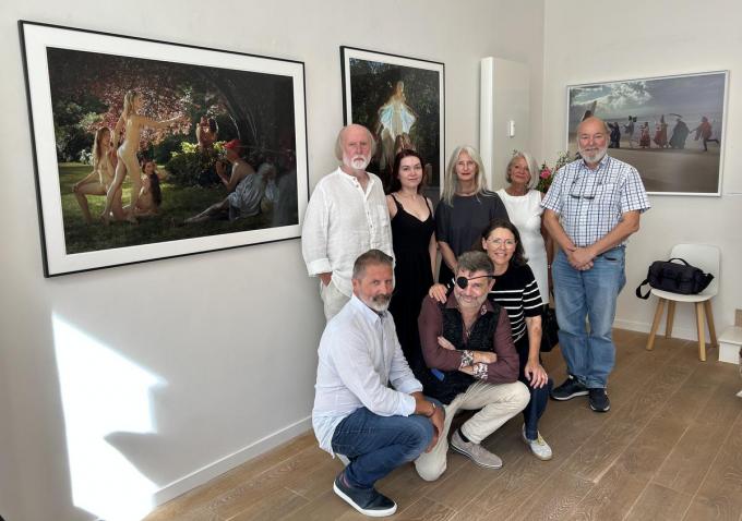 Binnen de Internationale Fotobiënnale presenteert kunstfotograaf en galeriehouder Bart Ramakers in Galerie P. zijn verhalende fototentoonstelling Ex Tenebris Lux. De kunstenaar laat zijn licht schijnen op de schepping, de schepselen en hun goden. “Hoe kan uit het niets iets ontstaan? Wat was er het eerst, de kip of het ei? God of de mens? Wie heeft het kwaad geschapen? En last but not least: wat maakt het uit?” zo vraagt hij zich beeldend af. Bij de tentoonstelling hoort een nieuw luxueus fotoboek dat het werk van Ramakers bundelt van 2018 tot vandaag. De tentoonstelling loopt tot 16 november, iedere woensdag en vrijdag van 14 tot 18 uur en op zaterdag, zondag en feestdagen van 11 tot 18 uur. Op de foto van links naar rechts en van boven naar onder: Marc Bussens, Steffie Dewinkeler, Horta Van Hove, Louise Robyns, Marc Smeets, Johan Hespeel, Bart Ramakers en Sofie Baert. (ML/foto ML)