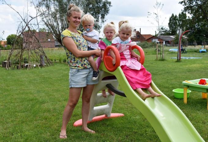 Joke Goemaere, 31 en afkomstig uit Tielt, woont sinds vier maanden met haar man Augustijn Kindt en hun kinderen Mirte (5), Jade (3) en Abel (1,5) in de Dosseweg in Schuiferskapelle. p>