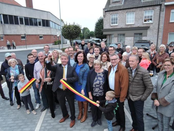 “De bewoners gaven al langer aan dat de parkeerdruk in de omgeving erg hoog is. Extra parkeerplaatsen realiseren was dus heel belangrijk in dit vernieuwingsproject. Na onderhandeling met de scholengroep Impact die eigenaar is van de oude schoolgebouwen van het gemeenschapsonderwijs kon er een huurovereenkomst afgesloten worden voor een stuk grond grenzend aan de Maciebergstraat waarop een nieuwe parking voor 10 voertuigen kon gerealiseerd worden. De parking is aangelegd in grasbetontegels die een betere waterinfiltratie toelaat. Heel verantwoord als je weet dat er per dag 6 km² verhard wordt in ons land. Daardoor kan het hemelwater bijna niet meer weg en worden we constant met berichten over lokale overstromingen geconfronteerd. Vandaar!”, besluit de burgemeester alvorens het glas te heffen.