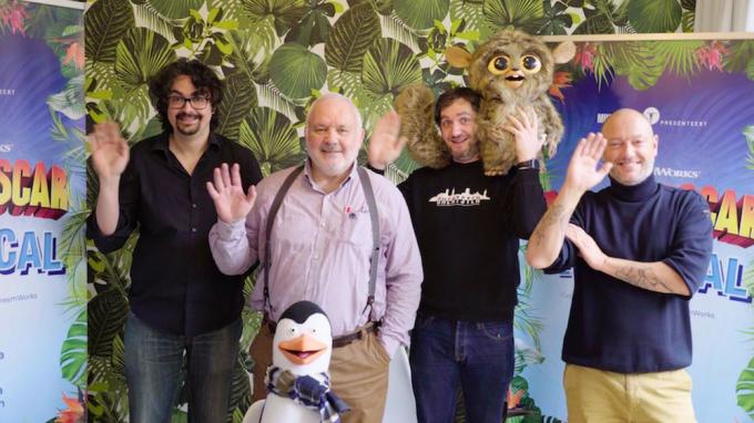 Veel verrassender is echter het illustere viertal dat te horen zal zijn in de voorstelling als “West-Vlaamse” pinguïns…. Zo zal politicus Jean-Marie Dedecker even stoppen met stemmen ronselen en voor een keer gewoon zijn stem leveren en dit aan de paranoïde, knorrige pinguïnleider ‘Skipper’. Chocolatier Dominique Persoone mag dan weer de pralines kortstondig laten rusten en zorgen voor de smakelijke steminvulling van de gestoorde, gewelddadige en messentrekkende pinguïn ‘Rico’. Stand-upcomedian Gunter Lamoot zal daarentegen voor de gelegenheid zeer lieflijk klinken als de softie van het stel ‘Soldaat’, de jongste pinguïn die houdt van eenhoorns en regenbogen. Of wat dacht u van comedy- en televisiemaker Lieven Scheire als plannenmaker en (niet altijd even) geniale uitvinder ‘Kowalski’ ? Lieven Scheire is toch geen West-Vlaming horen we u al denken…dat klopt, maar voor een ‘Slimste Mens’ blijkt het absoluut geen probleem te zijn om zich dat fijne dialect in recordtempo meester te maken. Onlangs doken Lieven, Jean-Marie, Dominique en Gunter (die ook de stem van muismaki ‘Mort’ levert) al samen de studio in voor een zeer geanimeerde inlezing van de stemmen van hun dierlijke alter ego’s. Hoe dat verliep en klonk, ontdekt u in het bijhorend filmpje van Music Hall.