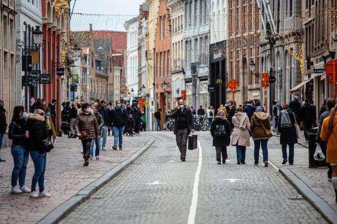 Brugge is nog Brussel niet. Daar waar het in de hoofdstad zaterdagmorgen al op de kopen lopen was in de winkelstraten, bleef het in onze eigen provinciehoofdstad al bij al rustiger. De winkelstraten waren niet leeg, dat zeker niet, maar wachtrijen waren er niet te zien en de social distancing respecteren zou geen probleem mogen zijn. Zo bleek toen we omstreeks 14 uur de bekende winkelas tussen de Markt en ‘t Zand aandeden.