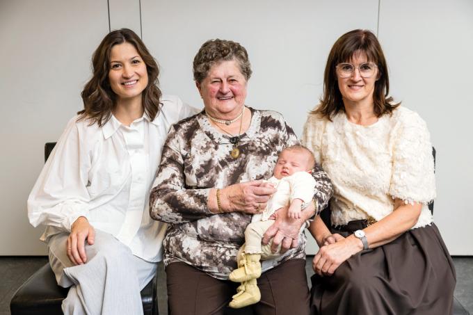 Juliette Van Acker (1,5 maand) vormt samen met haar mama Lisa Logghe (28), haar grootmoeder An Borra (55) en haar overgrootmoeder Anna Debruyne (82) een vrouwelijk viergeslacht. Zowel oma An als overgrootmoeder Anna wonen in Koekelare. (SVE/foto DC)