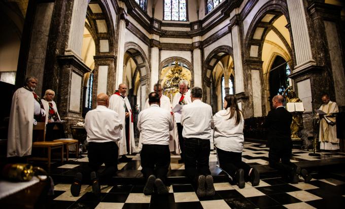 In de Onze-Lieve-Vrouwekerk in Kortrijk werden zaterdag vijf nieuwe leden opgenomen in de ridderorde OTJ-NGO, de moderne tak van de Orde van de Tempeliers. Tijdens een plechtige ceremonie met middeleeuwse rituelen legden ze geloften af van eerlijkheid, trouw en dienstbaarheid. “We helpen in stilte, bij Caritas Daden of gewoon door klusjes te doen voor wie het nodig heeft”, klonk het eensgezind.