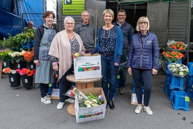 De winnaars van de tombola van de feestboerenmarkt mochten hun prijs – een assortiment van producten die te vinden zijn op de boerenmarkt – in ontvangst nemen.