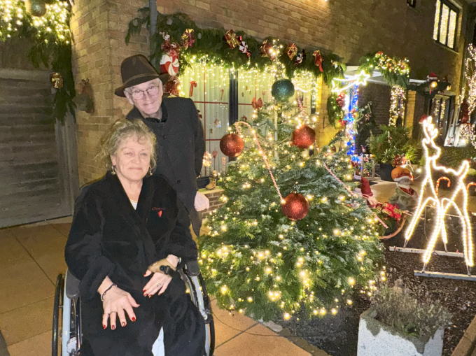 "Wij hangen al meer dan twintig jaar veel kerstlichtjes en -decoratie op", vertellen Luc Roosens en Suzanne Collart ,die ook al eens hebben gewonnen. (foto TVA)