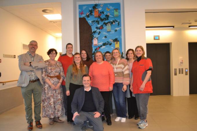 Het palliatief zorgteam stond in voor de realisatie. Joyce Libbrecht en Mildred Struyve vertellen: “Het is een boom met alles erop en eraan, waarmee ons huis wordt voorgesteld als een warm nest waar iedereen telt. De takken zijn de verbindingen tussen de afdelingen. De nestjes stellen de afdelingen voor, met elk een eigen kleur. De vogels zijn de bewoners die af en toe het nest verlaten en terugkomen.”