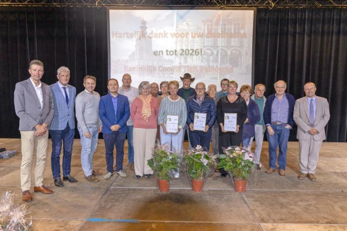 Dat de bebloemingswedstrijden in Tielt en zijn deelgemeenten nog altijd bijzonder populair zijn, bleek op 3 oktober opnieuw. De grote zaal van de Europhal zat tot de nok gevuld met enthousiaste deelnemers. Na een boeiende presentatie over de inspanningen en verwezenlijkingen van de deelnemers volgde de langverwachte prijsuitreiking. In de categorie ‘hoeves’ kaapten Frans en Jeannine De Fauw – Devlieghere uit de Goed Te Karelsstraat de eerste prijs met een score van 98 procent. Bij de ‘voortuinen’ ging de eerste plaats naar Walter Vandevoorde uit de Polderstraat, goed voor 95 procent. Hendrik Raes uit de Arendstraat werd bekroond voor de mooiste bebloemde gevel met een score van 93 procent. De drie laureaten kregen elk een stadsoorkonde als erkenning voor hun bijdrage aan een fleurige gemeente. (WME/foto WME)