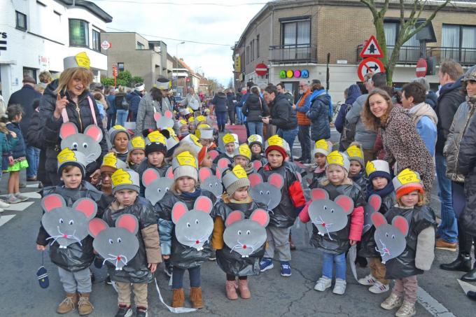 De allerkleinsten openden de stoet. De juffen hadden hun kleutertjes in een muizenuitrusting gestoken. Dit lokte veel applaus uit voor de ouders, grootouders en andere supporters. De carnavalstoet is een sterke traditie in de scholen. Elk leerjaar met een ander thema. Creativiteit komt er telkens overvloedig bij te pas. Na de stoet was er op de speelplaats een fuif voor jong en minder jong. Dit was het definitieve sein voor het begin van de krokusvakantie. (MVD/foto MVD)