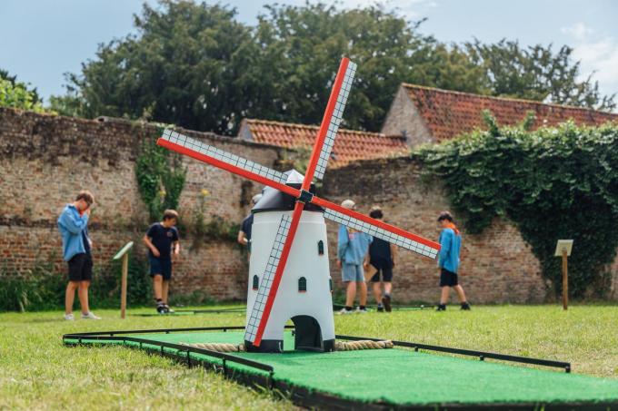De binnentuin van het historische Sint-Janshospitaal in Damme wordt deze zomer omgevormd tot een pop-up minigolf.
