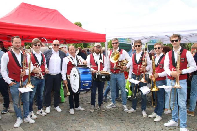 Donkere regenwolken dreigden ‘s morgens nog roet in het eten te gooien, maar geleidelijk aan was de zon meer van de partij, waardoor steeds meer mensen naar het Dorpsplein afzakten om een bezoekje brengen aan de lokale handelaars. Vanaf 11 uur kon iedereen aanschuiven voor een drankje en zorgden de Verbiestieboys voor muzikale ambiance. Tussen 11 en 12 uur was het plein volledig gevuld met keuvelende inwoners, die na afloop nog een beker van de gemeente of een doos met vier potjes met kruiden mee naar huis kregen. (JG/foto Jan)