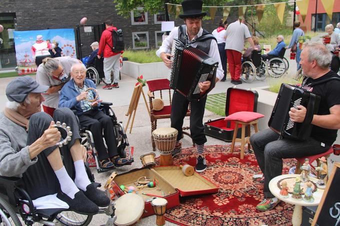 De dorstigen konden zich te goed doen aan frisse drankjes uit het drankenkraam. Op de vrolijke tonen van de muziek van de accordeonisten ‘Trio Trottoir’ kon je gooien met slagroomtaarten, draaien aan het Rad van Fortuin of eendjes vissen in het zwembad. Er was een plaatselijk rondje voorzien voor de kermiskoers, waar de bewoners met hun rollator/rolwagen aan konden deelnemen. In de namiddag werd gezorgd voor verbinding, herkenning en plezier door het aanbieden van het typische kermisgevoel van vroeger. Dit in het bijzonder gericht naar mensen met dementie en hun omgeving.