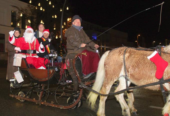 Het bezoek startte in de Klinkaertstraat in Stasegem. “Wat een eer, wat een ontvangst met meneer de burgemeester op kop en een begeleiding van een politiewagen, een brandweerwagen, seingevers en boven al een mooie koets met mooie paarden, gemend door Stijn, die dat voortreffelijk deed”, aldus de Kerstman.