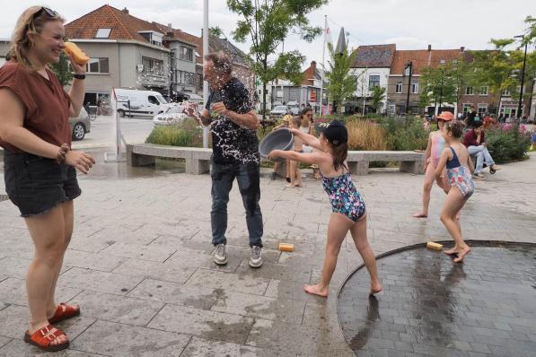 Kuurne / Vakantie Kuurne / Vakantie Eerste editie van Spetterend Kuurne groot succes, ook burgemeester houdt het niet droog 4 juli 2025