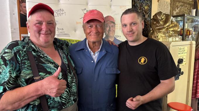 “Na de opnames voor VTM ben ik hier ook privé nog geweest en het was steeds een hartelijk contact. Ze kwamen ook naar een optreden en daarna is het idee ontstaan voor mijn komst naar De Zoeten Inval”, aldus Jacques Vermeire. “Ik kom als DDT. Die is ook oud en bijna ook antiek. Het past bij de zaak”, grapt Vermeire die graag op de foto ging met de aanwezigen en tijd nam tijd voor een praatje.
