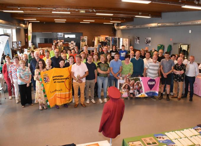 Verschillende verenigingen hadden er een stand opgebouwd om de bezoekers te laten kennismaken met hun werking. Je kon er terecht bij dé Academie, Chiro Lange Jo, Chiro Ixagodo, VK Langemark-Poelkapelle, Rapid Langemark, Jonger Dan Je Denkt, Dansschool Donatha, de badmintonclub, Raak, Davidsfonds, Sint-Cecilia, Landelijke Gilde Poelkapelle, fotoclub SO-ISO, Okra Poelkapelle, Velt Westland, Gezinsbond Langemark-Poelkapelle, Kermiscomité Madonna, Tuinhier Langemark-Poelkapelle, Kunstkring 20-10 LP, Ferm Poelkapelle en Langemark-Poelkapelle Verbeeldt. We zien de vertegenwoordigers van de verenigingen samen met schepen Brecht Bogaert en medewerkers van de dienst Vrije Tijd.