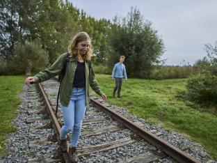 We blijven de houten paaltjes volgen tot net voor een safaritentenpark. Het grindpad kronkelt omhoog langs twee camperparkings in de zeereepduinen. Boven wacht een machtig uitzicht op de monding van de Schelde (5) in de Noordzee. Die machtige rivier schuurt vanuit het Noord-Franse Gouy 350 kilometer door het landschap om dan hier zijn reis te eindigen.