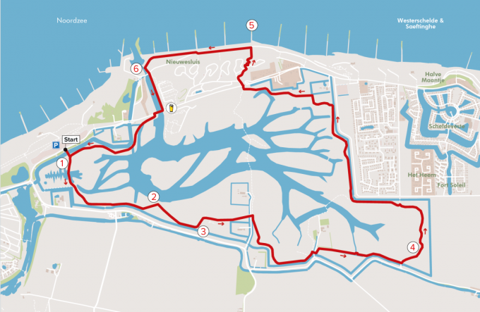 – Start: aan de parking, Walendijk 9, Breskens (betalend, 2 euro/uur)