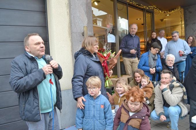 De vereniging Deureduwers liet dit niet zomaar voorbijgaan en organiseerde zaterdagmiddag een applausmoment met aansluitend een glaasje en een bakkershapje. Familie, buren van het Kerkplein, klanten en veel sympathisanten waren op de afspraak. De straat was verkeersvrij en de bakker die zijn emoties niet steeds de baas was, beleefde de ene verrassing na de andere. Zo zong Ignace Baert en speelde de St.-Ceciliafanfare heerlijke klanken. Voor Pol en Griet, met de vier kleinkinderen van Griet rond zich, werd het warme afscheid mee ondersteund door een toespraken van buur Bruno en burgemeester Louis. Deze laatste wees op de centrale plaats die Pol innam in zijn gemeente. “Ik weet dat er nooit een vereniging of initiatief was dat niet op de steun of medewerking van Hanssens kon rekenen. Ik weet ook dat er steun was voor de mensen die het moeilijk hadden. Grote dank en geniet nu maar van jullie pensioen.” Ondertussen stond voor iedereen een drankje klaar. De bakker, die zaterdagavond zijn zaak sluit, had ook lekkere gebakjes klaar. Pol dankte voor de warme organisatie. Onder de aanwezigen één man in een witte jas… bakker Joost die vanaf 2 januari de zaak overneemt. (MVD/Foto MVD)